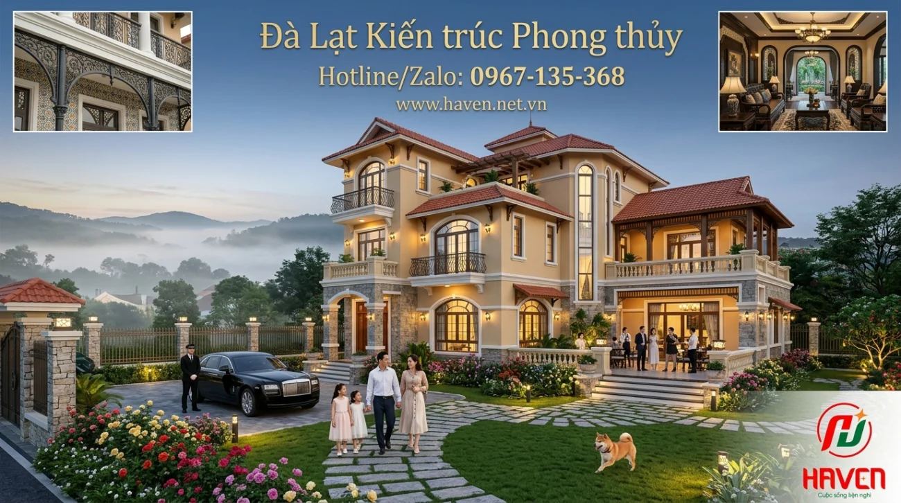 Giữa cao nguyên Lâm Viên hùng vĩ, nơi sương mờ ôm trọn những nhành thông xanh, việc sở hữu một ngôi nhà không chỉ đơn thuần là tìm nơi trú ngụ, mà là khát vọng về một không gian sống đạt đến ngưỡng cửa của sự hoàn mỹ. Hình ảnh tòa dinh thự mang phong cách Địa Trung Hải cách tân với mái ngói đỏ ấm áp và những khung cửa vòm mềm mại chính là biểu tượng cho sự giao thoa tuyệt vời giữa nét đẹp phóng khoáng của đại dương và sự tĩnh lặng của núi đồi. Tại HAVEN, chúng tôi thấu hiểu rằng mỗi viên gạch được đặt xuống tại Đà Lạt và Phường Lâm Viên phải mang trong mình cả tâm hồn kiến trúc lẫn dòng chảy năng lượng bền vững. Dịch vụ xây dựng nhà trọn gói tại Đà Lạt và Phường Lâm Viên của chúng tôi không chỉ cam kết về chất lượng thi công mà còn là sự bảo chứng cho một cuộc sống vượng khí, an lành thông qua thuật phong thủy bí truyền.