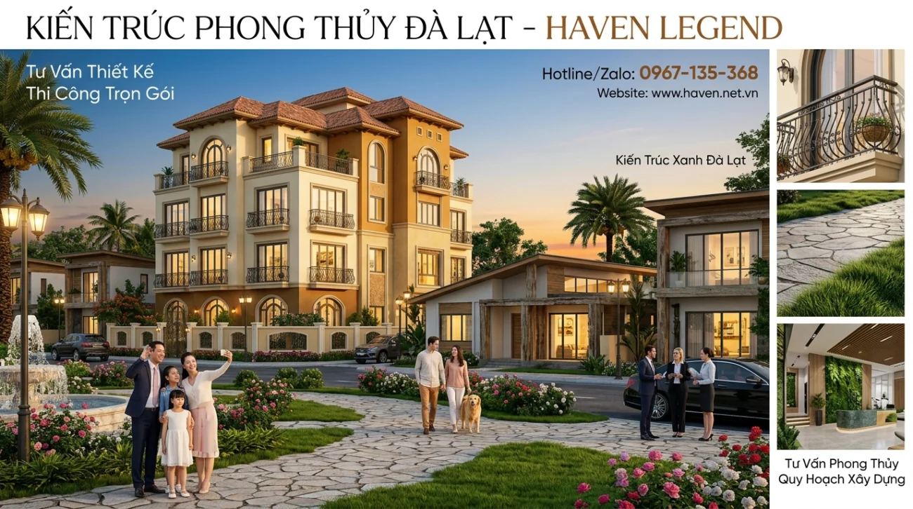 Giữa không gian thanh bình của thành phố sương mù, việc kiến tạo một không gian sống đẳng cấp đòi hỏi sự am hiểu sâu sắc về cả nghệ thuật vị nhân sinh lẫn dòng chảy năng lượng của đất trời. Hình ảnh tòa biệt thự phố Tân cổ điển tráng lệ mà quý khách đang chiêm ngưỡng chính là hiện thân của sự sang trọng, tinh tế, được HAVEN đặc biệt thiết kế để hài hòa với cảnh quan tại Đà Lạt và Phường Cam Ly. Tại HAVEN, chúng tôi không chỉ cung cấp dịch vụ xây dựng nhà trọn gói tại Đà Lạt và Phường Cam Ly mà còn mang đến giải pháp Kiến trúc Phong thủy toàn diện, giúp gia chủ đón nhận tối đa cát khí và tài lộc.